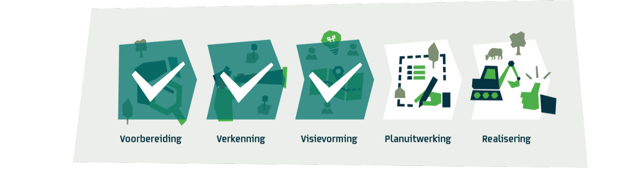 De gebiedsgerichte aanpak Vlijmens Ven, Moerputten en Bossche Broek doorloopt 5 fases, en zit nu in de vierde fase: de planuitwerking. Op 11 september 2025 stemden de bestuurders van de gebiedspartners in met het geactualiseerde koersdocument. Hiermee ronden we de visievorming af en starten we met de planuitwerking.