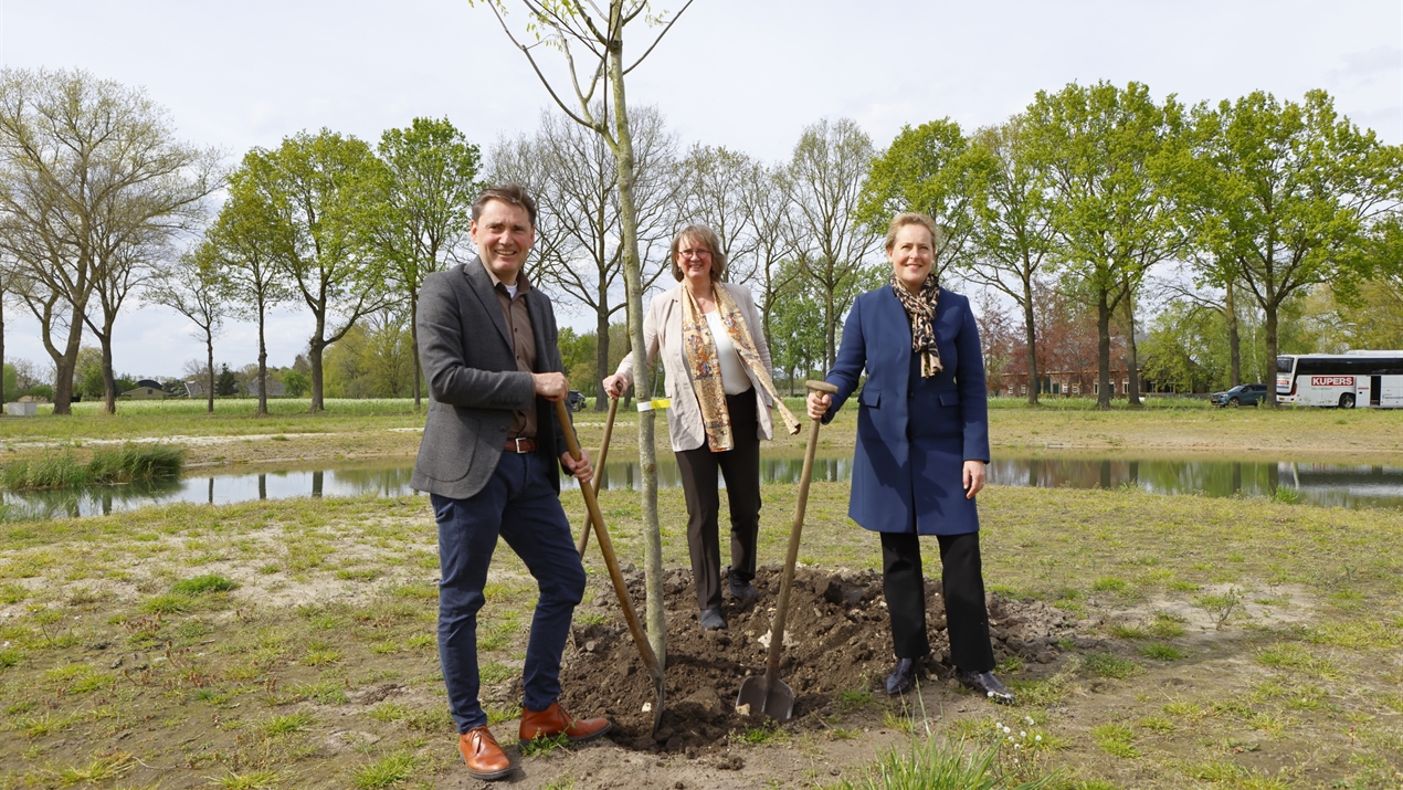 De eerste versie van het uitvoeringsprogramma van de Gebiedsgerichte Aanpak Kampina en Oisterwijkse Vennen is klaar. Met het planten van een boom in het waterbergingsgebied De Gijzelaar in Oirschot markeerden wethouder Joep van de Ven, gedeputeerde Hagar Roijackers en waterschapsbestuurder Mado Ruijs letterlijk en figuurlijk de start van de uitvoeringsfase.